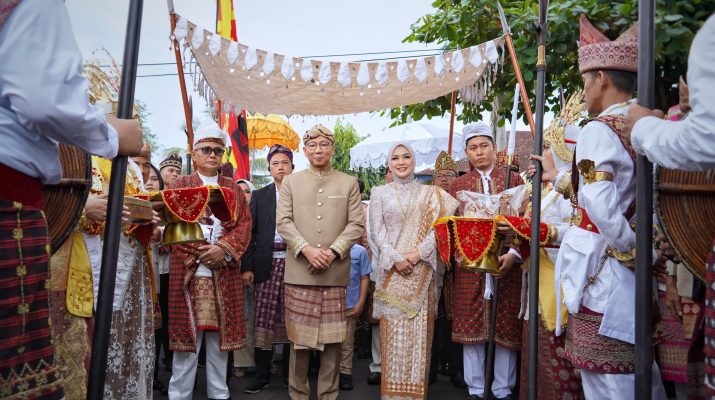 Bandar Lampung (kaganga)-Gubernur Lampung, Rahmat Mirzani Djausal, bersama Ketua TP. PKK Provinsi Lampung, Purnama Wulan Sari Mirza, resmi menempati Rumah Dinas Gubernur Mahan Agung. Hal tersebut ditandai dengan digelarnya acara adat Ngantak Gubernur Buka Belangan, Rabu (5/3/2025).