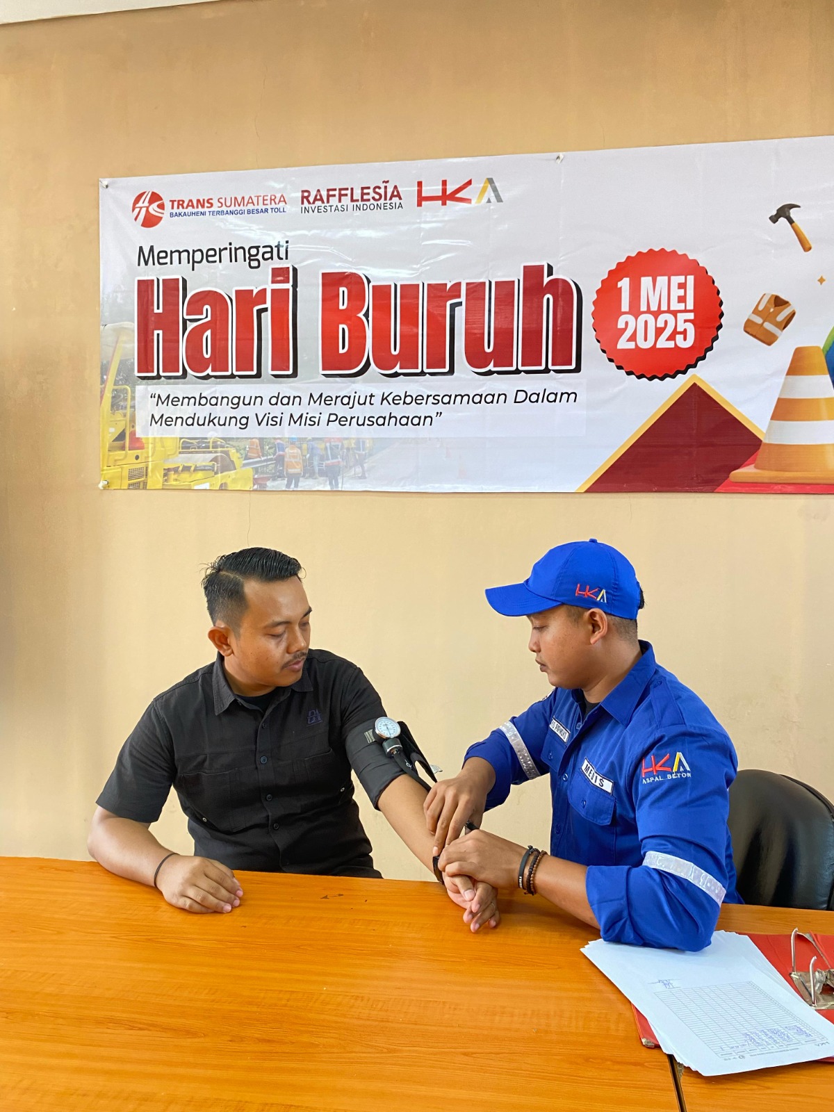 Bandar Lampung(kaganga)-Dalam rangka menyambut hari buruh yang jatuh pada tanggal 1 Mei 2025, PT Bakauheni Terbanggi Besar Toll (BTB Toll) bersama PT Hakaaston (HKA) melaksanakan kegiatan pemeriksaan kesehatan gratis bagi seluruh karyawan Ruas Tol Bakauheni Terbanggi Besar (Bakter), Kamis (01/05).