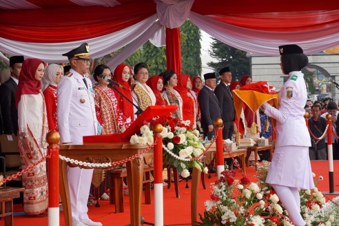 “Delapan dekade yang lalu, para pendiri bangsa dengan gagah berani memproklamasikan kemerdekaan. Hari ini tugas kita adalah melanjutkan perjuangan itu dengan kerja nyata,” ucap Gubernur.