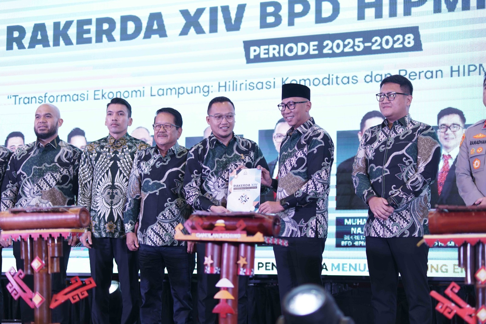 BANDAR LAMPUNG (KAGANGA) – Himpunan Pengusaha Muda Indonesia (HIPMI) Lampung menegaskan komitmennya menjadi motor penggerak hilirisasi komoditas lokal dalam Rapat Kerja Daerah (Rakerda) XIV sekaligus Pendidikan dan Latihan Daerah (Diklatda) yang digelar di Ballroom Hotel Emersia, Bandarlampung, Selasa (23/9/2025).