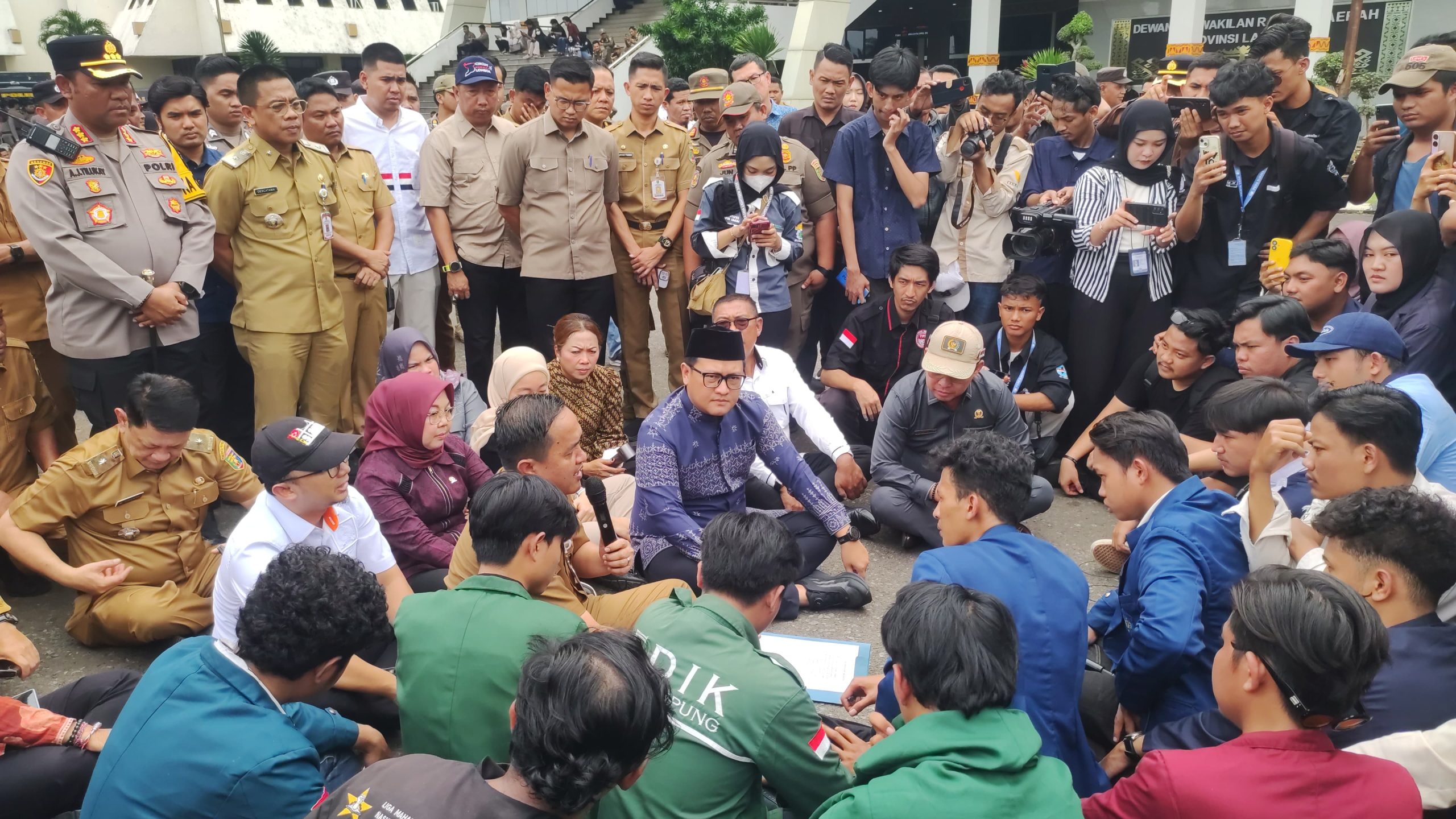 Aspirasi mahasiswa diterima langsung oleh Kepala Dinas Pendidikan dan Kebudayaan (Kadisdikbud) Lampung, Thomas Amirico. Turut hadir Ketua DPRD Lampung Ahmad Giri Akbar, Ketua Komisi V Yanuar Irawan, Anggota Komisi V M. Syukron Muchtar, serta sejumlah anggota dewan lainnya.