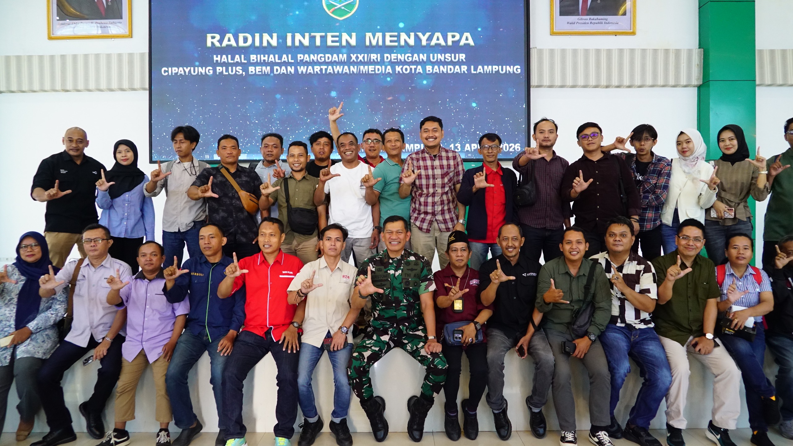 Bandar Lampung (kaganga.id)– Kodam XXI/Radin Inten menggelar kegiatan silaturahmi dan halal bihalal bersama Organisasi Kepemudaan (OKP) Cipayung Plus, LMID, unsur Badan Eksekutif Mahasiswa (BEM), serta wartawan/media wilayah Lampung. Kegiatan ini dipimpin langsung oleh Pangdam XXI/Radin Inten, Mayjen TNI Kristomei Sianturi, S.Sos., M.Si. (Han), mengusung tema “Kodam XXI/RI Kolaborasi Untuk Negeri”, bertempat di Aula Sudirman Makodam XXI/RI, Jl. Teuku Umar No. 85, Kelurahan Penengahan, Kecamatan Kedaton, Kota Bandar Lampung, pada hari Senin (13/04/2026).
